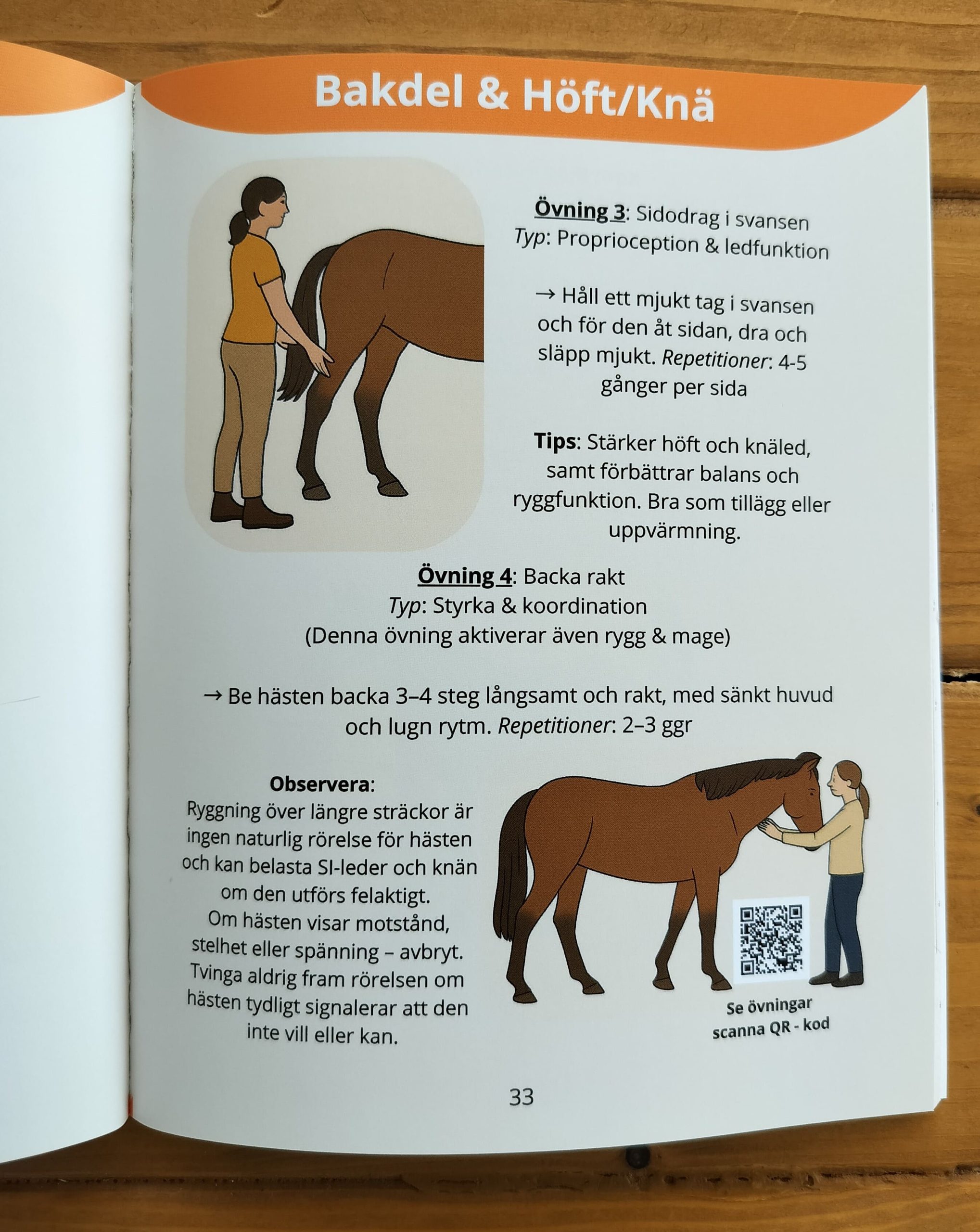 Alla övningar är sådana jag själv använder i mitt arbete som equiopat och friskvårdsterapeut, och som jag kan ge ut efter behandling. Boken är därför tänkt som ett naturligt komplement mellan behandlingar – men fungerar lika bra i förebyggande syfte.